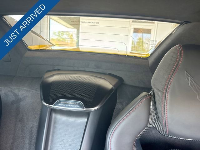 The Corvette Stingray 3LT's exterior is a stunning display of Chevrolet's design prowess, featuring a bold and distinctive Competition Yellow Tintcoat Metallic color that commands attention on the road. The convertible top with Carbon Flash-Painted Nacelles and Roof adds an extra layer of sophistication, while the Black Exhaust Tips and Carbon Flash Metallic-Painted Outside Mirrors and Spoiler complete the aggressive yet refined look.